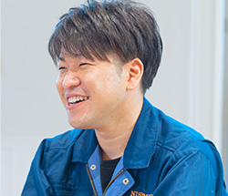 たしかにそうですね。製品や設計にお客様の意向を反映するためにも、特に営業部と技術部間での連携は欠かせませんね。そういう意味でも、うちのような組織としての風通しのよさは、価値提供に活きてる気がします。実際、私の所属する技術部の「製造課」は社内では組み立てや機械加工をする反面、たとえば据付のときは現場監督として現場に行き、メンテナンスのときは作業員として現場に行くというように、営業担当と連携しながら仕事するケースが多いんです。そうそう、Tさんは入社して1年が経つ頃だけど、仕事にはもう慣れましたか?