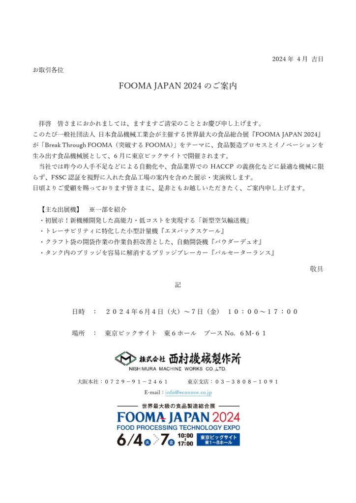 「FOOMA JAPAN 2024 国際食品工業展」出展案内
