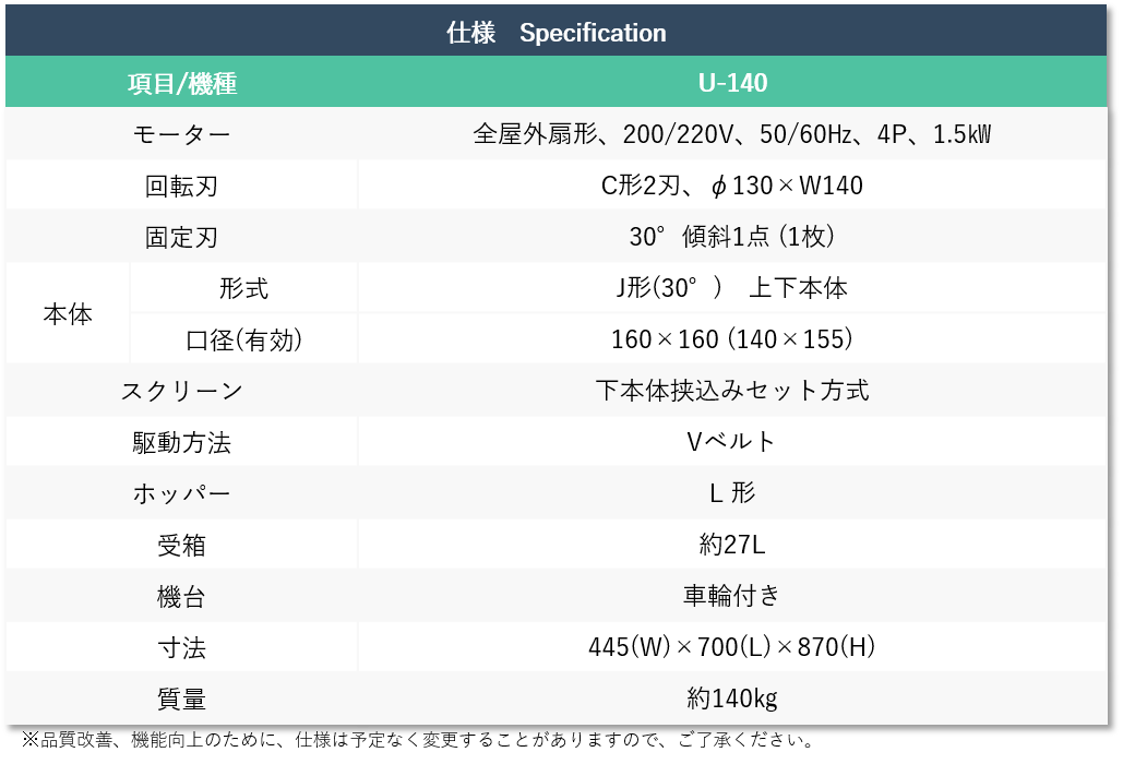 ・回転刃はブロックごとに角度を変えており、剪断の負荷を分散しています。